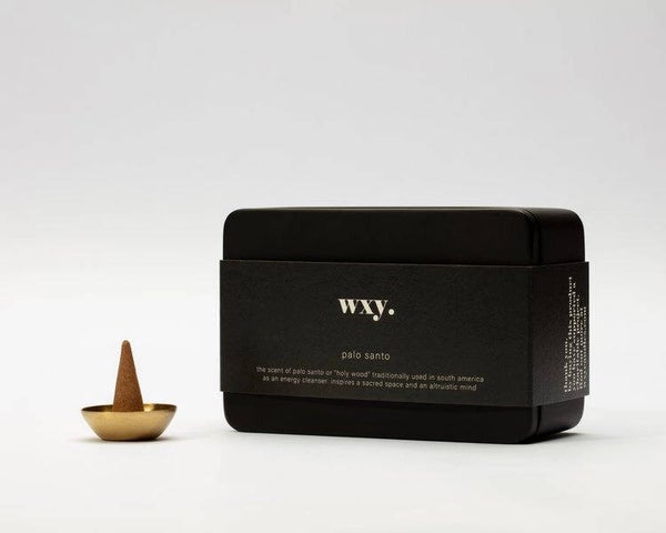 20 wierookkegels met de geur "palo santo". Elk doosje bevat een messing schaaltje om je wierookkegel op te branden. Hergebruik het doosje nadat alle kegels zijn opgebrand om kleine voorwerpen op te bergen of als zeepschaaltje.