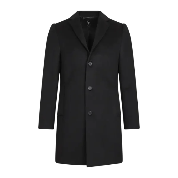 Deze zwarte mantel bestaat voor 50% uit wol en is dus zowel een stijlvolle als warme metgezel in de winter.